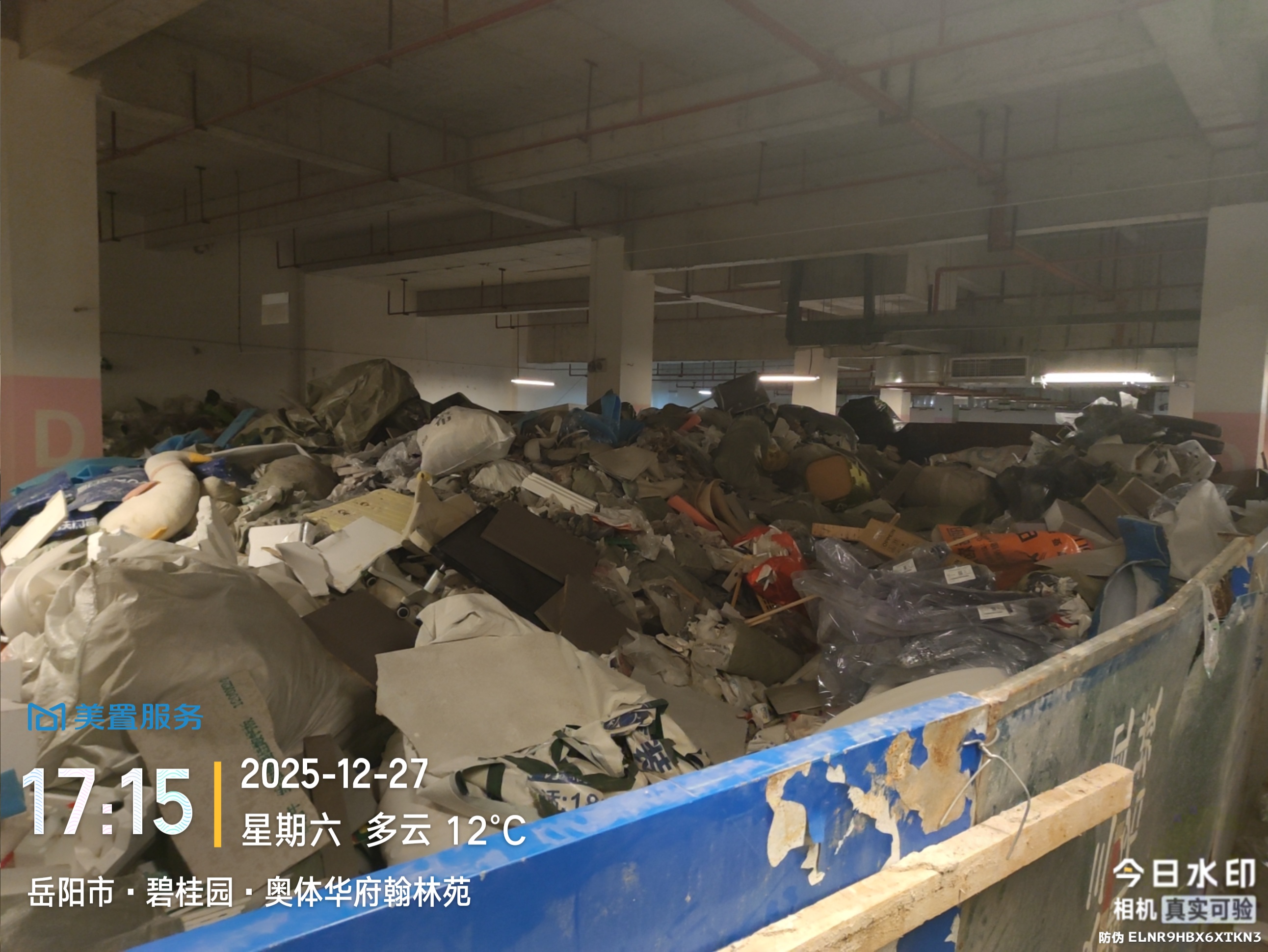 标题: 关于碧桂园奥体华府地下车库垃圾堆积如山的投诉
